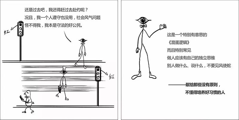 曾經看過一篇小短文,一位國外的老奶奶在等交通信號燈,旁邊的路人都是匆匆穿過斑馬線,因為沒有汽車來往。